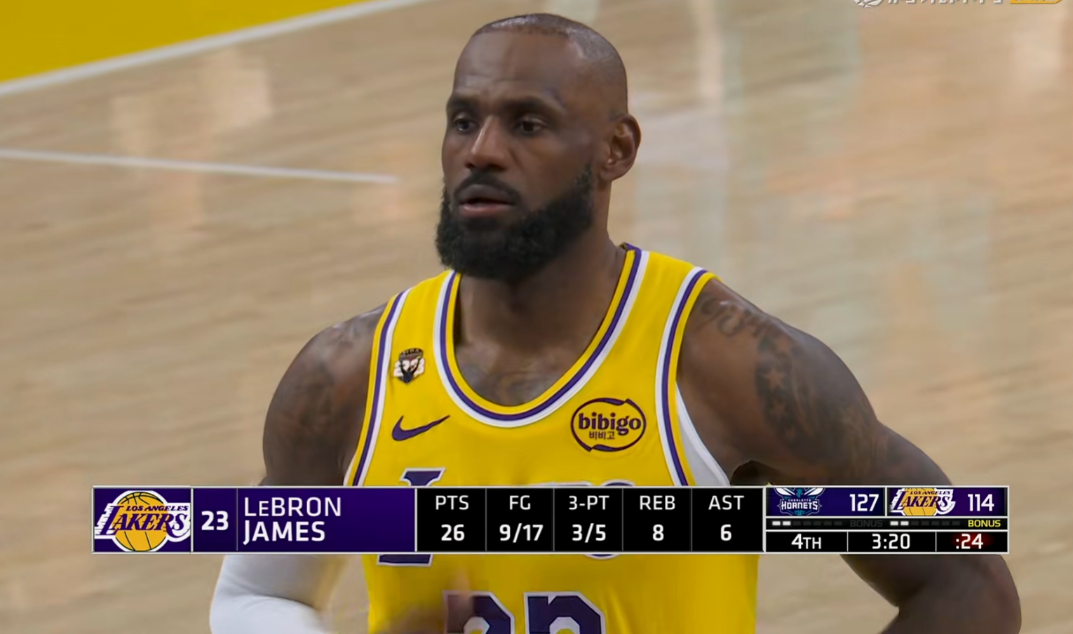 当时湖人被黄蜂打的提前换主力投降,比赛也已经进入到垃圾时间,还剩下两秒的时候,詹姆斯起身看了一眼球场,最后直接返回球员通道了,他当时连衣服都已经穿好了,而此时黄蜂队的球员还在挨个和湖人球员拥抱,甚至连东契奇走之前,都上去和对手击了个掌。而詹姆斯站起来看了队友一眼,二话不说扭头走回球员通道,对于自己队伍的表现是非常不满意的。